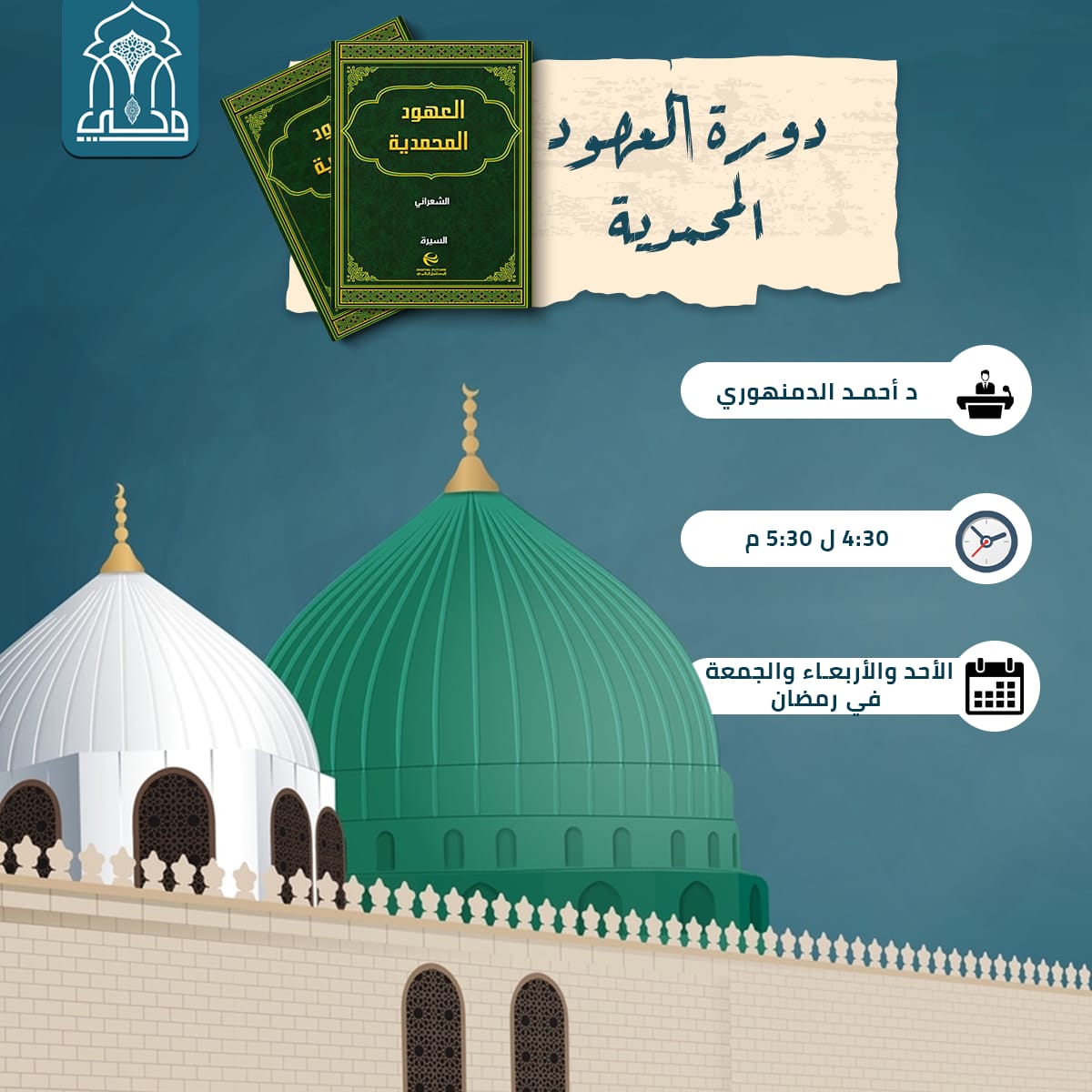 دورة (#العهود_المحمدية ):والتي نتبع فيها سنة نبينا صلى الله عليه وسلم ،فنلتزم أوامره وننتهي عن نواهيه من خلال مدارستنا لبعض هذه الأمور من كتاب (العهود المحمدية ) .
